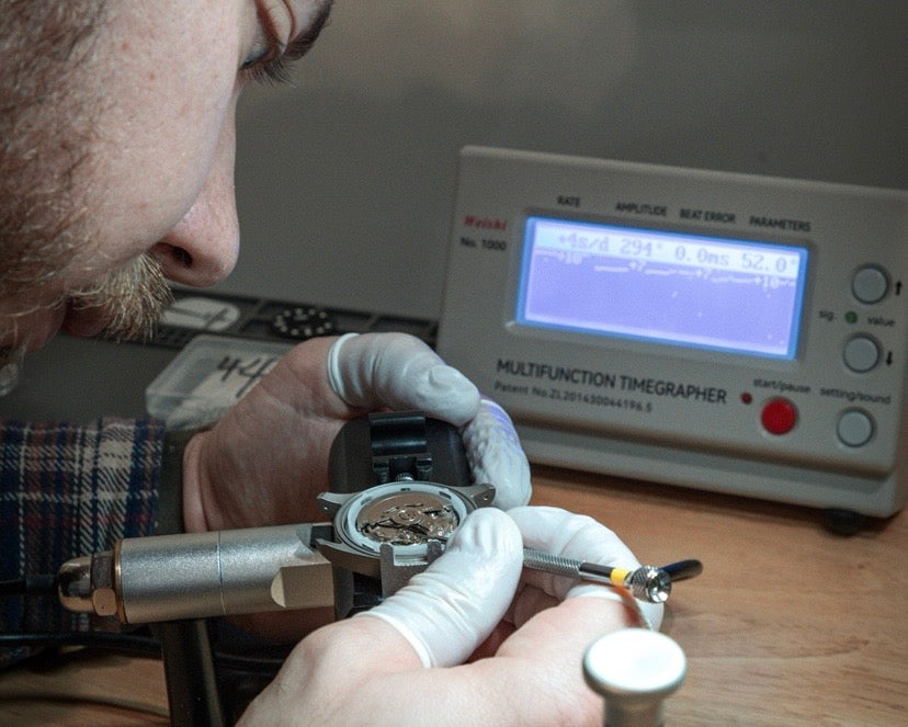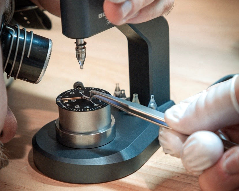 In the process of offering the Riverine, Hunter apprenticed under Micah learning the watchmakers process behind the production of an intimately sized timepiece manufacturer - from assembly to regulation.